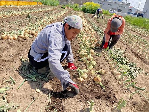 - 近隣の畑をお借りし、玉ねぎ、さつまいも、キャベツ、ブロッコリー、お米等の栽培をしています。農協やJAファーマーズさんに出荷、エールで販売もしております。